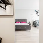 リガのLatgales priekšpilsēta地区にある1-Bedroom Loft In Siena Tirgusアパ-トはリガ国際空港から15キロメ-トル離れています. アパ-トにあるのは1のベッドル-ムと1バスル-ムです.